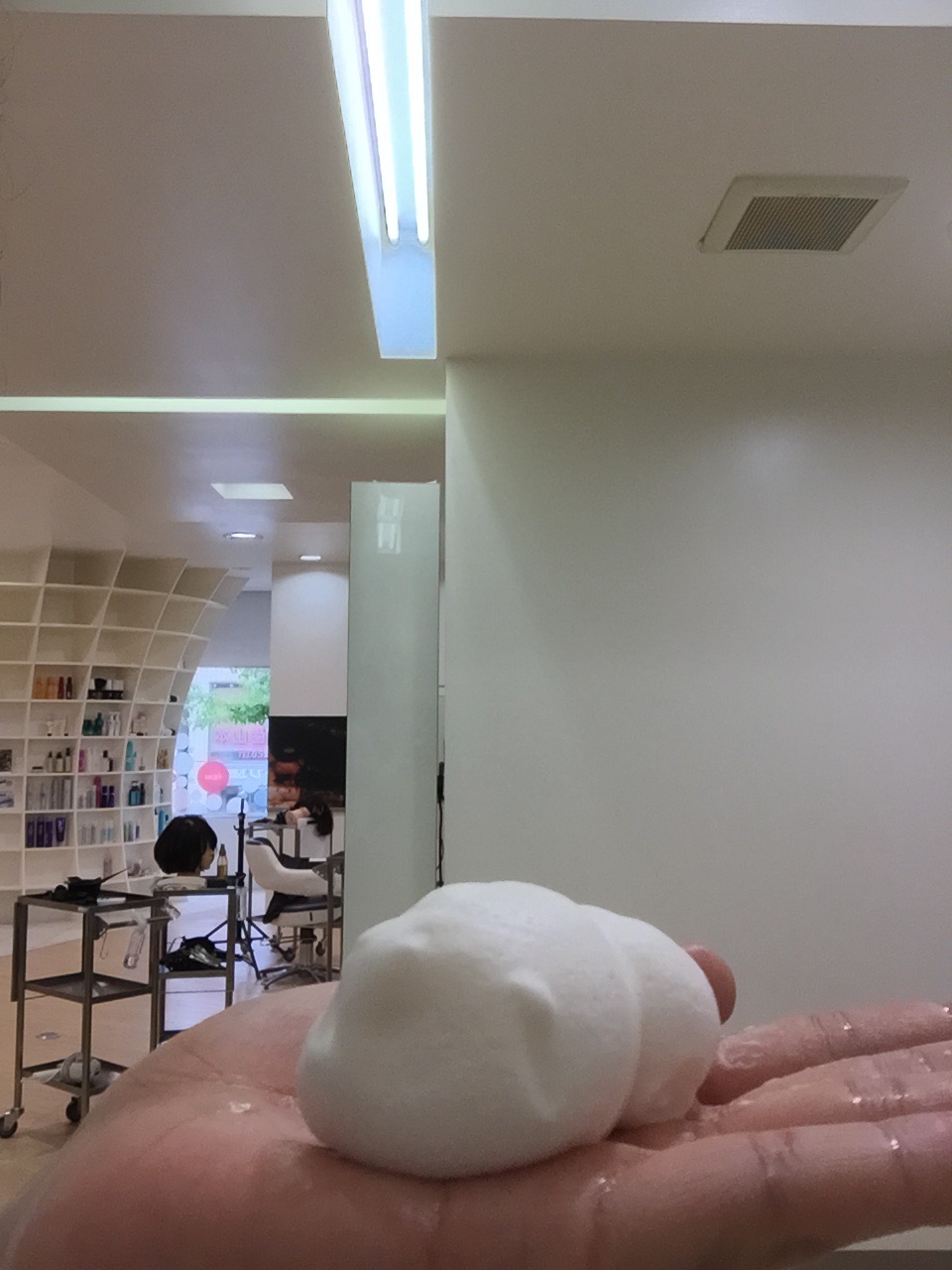 ムースの泡がシュワシュワと髪にしみこんでゆきます。